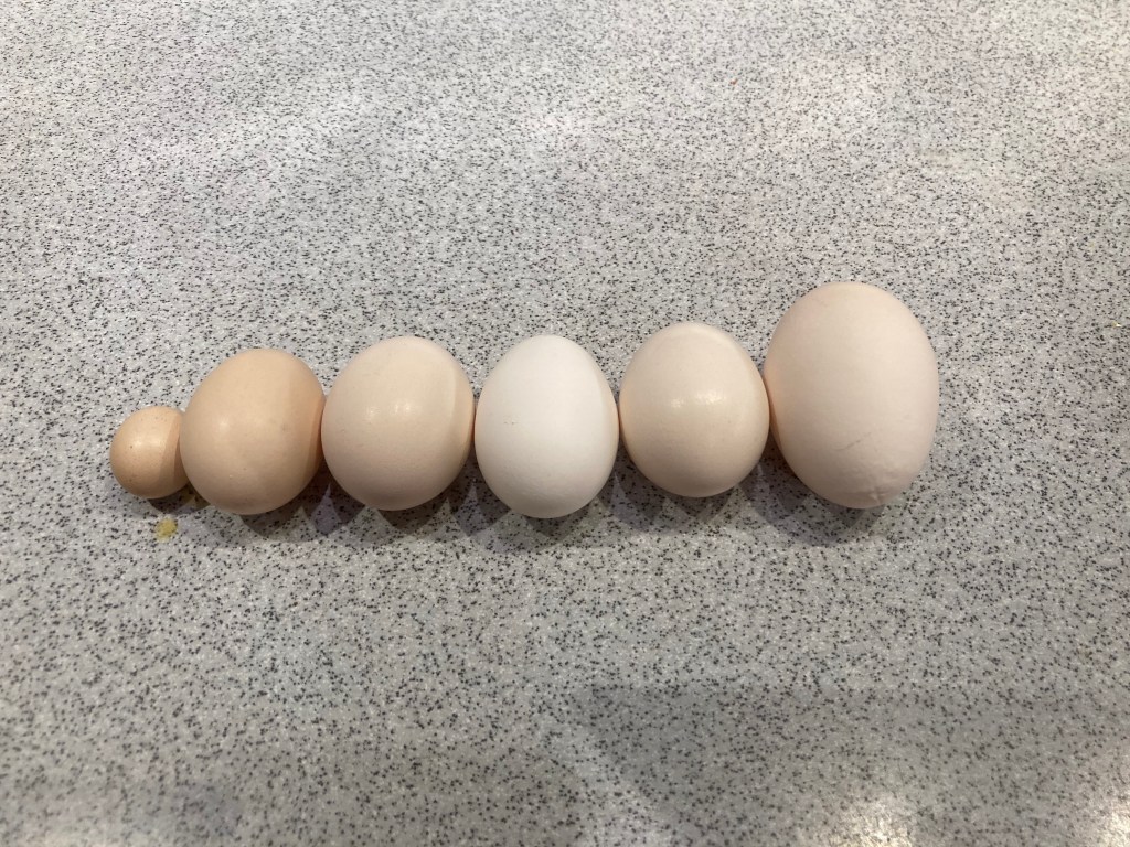 Van dubbeldooier tot mini-ei. De ei-variatie kan enorm groot zijn.